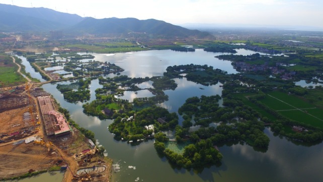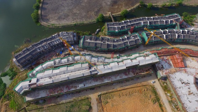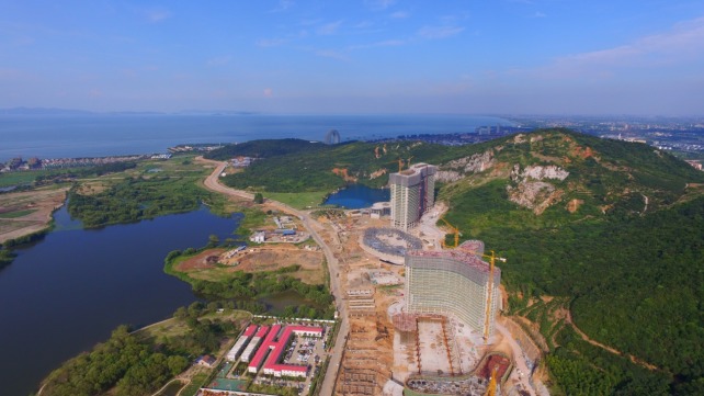 目前钻石酒店主楼已经封顶,正进入内外部装修,其他宴会会议片区、太湖古镇片区、游乐片区等五大片区均在紧锣密鼓建设当中。
