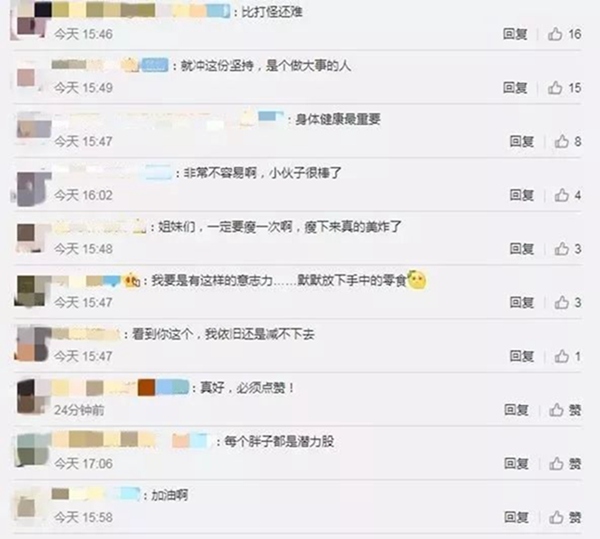 网友们也纷纷为他加油打气:“厉害了小哥!”“减肥还看执行力”“身体健康最重要,真棒!”