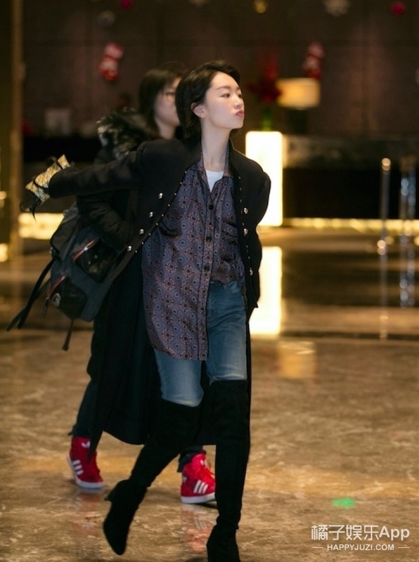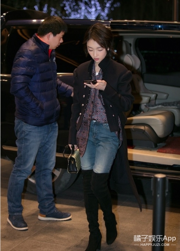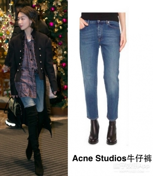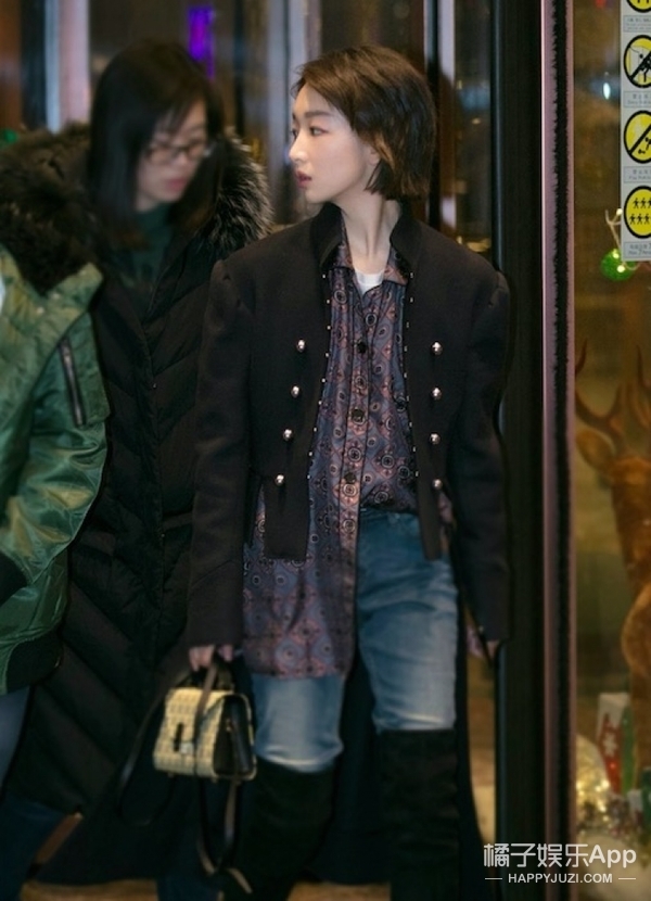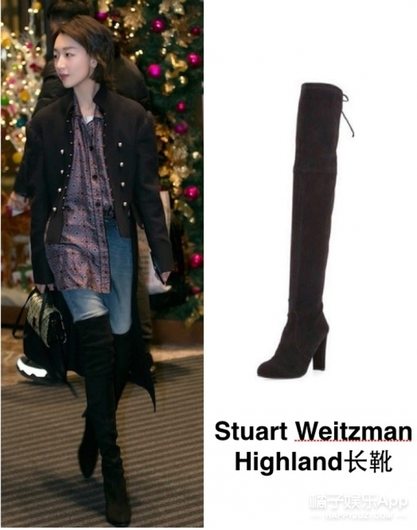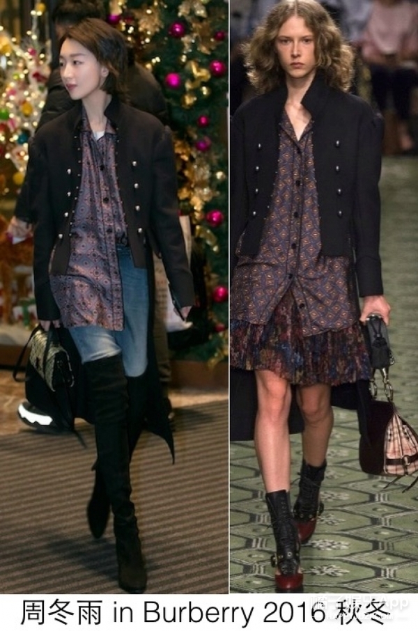 这套Burberry2016秋冬的军装夹克和印花衬衫被周冬雨穿出了学院风之外的另一种洒脱和帅气,非常的周冬雨范儿。周冬雨这一次似乎走的是西部牛仔风格的女孩,黑色系的过膝靴和淡蓝色牛仔裤的组合,随意帅气。
