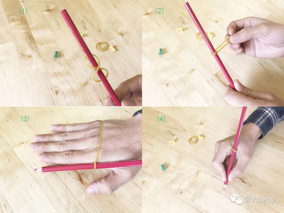 每次像做游戏一样的缠绕一根橡皮筋,就能简单地培养握笔习惯。