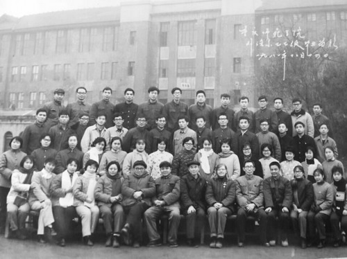 ■钟廷安(最后一排,左三)从重庆师范学院毕业时,与同学合影。监考老师是钟廷安高中母校的一名俄语老师,知道钟廷安的英语成绩不错,就赶紧过来看试卷。