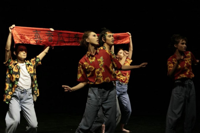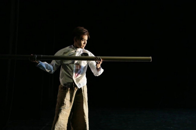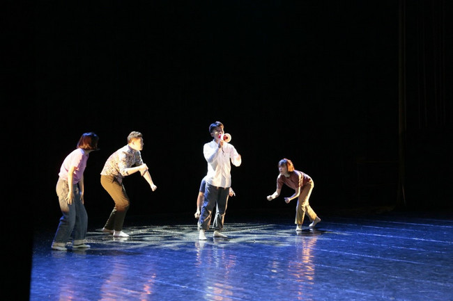 《一个喇叭的梦想》则是同学们在舞蹈艺术层面,对社会现状的批判性现实主义探索。是对当代年轻人内心斗争状态的精准侧写:在挫折和迷茫中丧失自我,但梦想仍然一息尚存;在对理想的执着和对现实的妥协之间反复挣扎,寻找改变命运的灵丹妙药,甚至用“打鸡血”式的成功学来找补对现实的迷茫......该作品具有浓厚的讽刺和批判意味,但并不流于对社会乱象尖锐的指责,而是玩了一把“黑色幽默”。整部作品在特立独行之余,显得游刃有余,颇具风度。