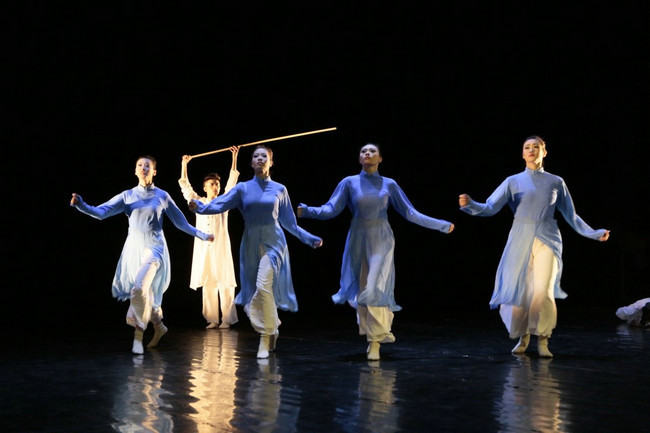 《黄河“映画”》也是一部传统与该作品创造性地在我国著名协奏曲《黄河》协奏曲的基础上,加入了突破性的思考和诠释,以一种全新的方式,表达出中华民族对母亲河的赞颂。在舞台效果的呈现上,同学们以有力的舞姿刻画出黄河“渔人”质朴勤奋、坚韧不拔的品质,群舞更呈现出的史诗般磅礴的气势。