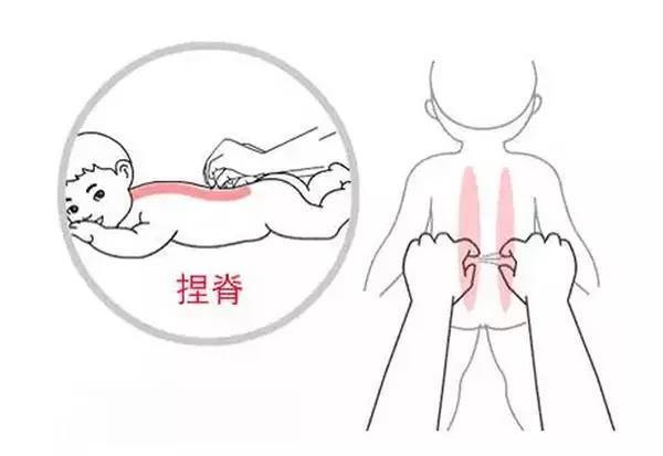 手法:由下往上提捏孩子脊旁1.5寸处3-5遍,每捏3次向上提一次。