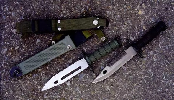 (1)从结构形式上看,传统刺刀只能装在枪上使用,一般不能独立使用;多用途刺刀既可刀枪结合,又能独立使用(作为生存军用刀);