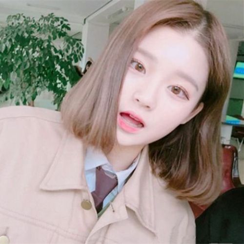 奶茶色系列的发色绝对清新养眼,特别是这种浅一点的奶茶色,更是清新显甜美气质,还衬得皮肤白皙,与齐肩短发搭配真心好看。