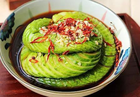 6、锅中放少许油烧热,将油趁热浇在辣椒和蒜的上面,激出香味,此菜即成。