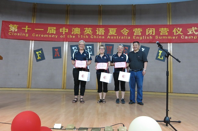 朱玲副校长在主持中说,在两周的时间里,学校为近600名营员安排了高中新课程各学科学习方法的指导和生涯规划教育,同时,还为各位营员精心设计了丰富多彩的综合活动课程,英语拼写大赛、英文歌曲大赛、英文诗朗诵比赛等,每位营员都积极参与,认真体验,受到了来自澳洲的纯正英语风的熏陶,了解到了多元的文化与风情,收获了来自异国的深厚友谊。最后,朱玲副校长代表学校再次对9位尊敬的外教表示感谢!祝愿中澳友谊"接天莲叶无穷碧",夏令营的明天"映日荷花别样红"!