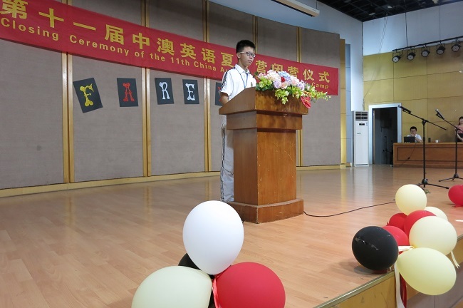 学生代表何皓天同学在发言中代表全体同学对来自澳大利亚的老师们和嘉兴一中的老师们表示最真诚的感谢,谢谢老师们为高一新生准备了这场丰富多彩的文化盛宴,让我们在盛夏时光留下了一份难忘的记忆!
