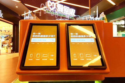 另外,爱回收嘉里中心环保服务站还放设计了以亚克力为原材料勾勒出的大城市轮廓,并将有代表性的经典废旧手机放置其中,它象征着在一线城市快节奏的生活影响下,被快速淘汰的大量废旧电子产品。爱回收希望通过该装置唤醒用户对于环境污染的关注。与此同时,爱回收还将该店面内的触摸询价机调低后倾斜放置,增加嘉里城众多儿童客群与爱回收之间的互动机会。