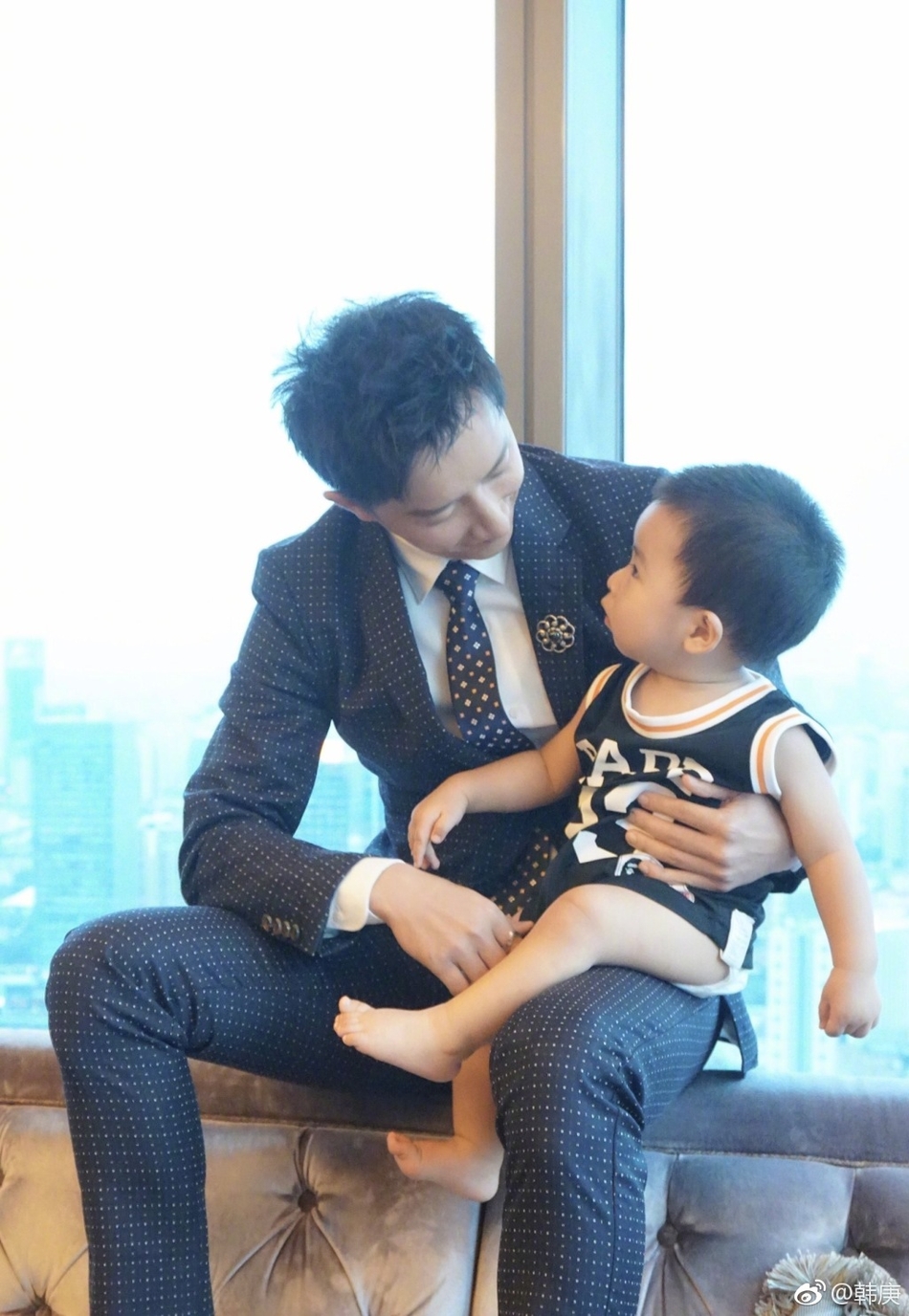 8月26日下午,韩庚在微博晒出一组与萌娃互动的照片,惹一众粉丝留言称“你自己快生一个吧”。照片中的韩庚明显瘦了很多,利落精英范儿如回到出道时的模样。