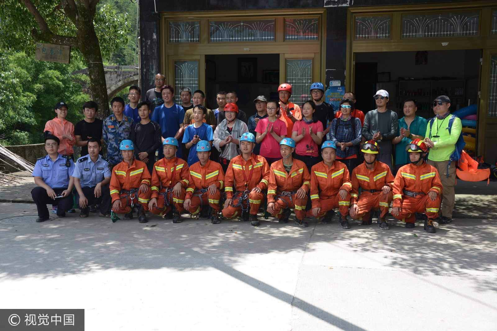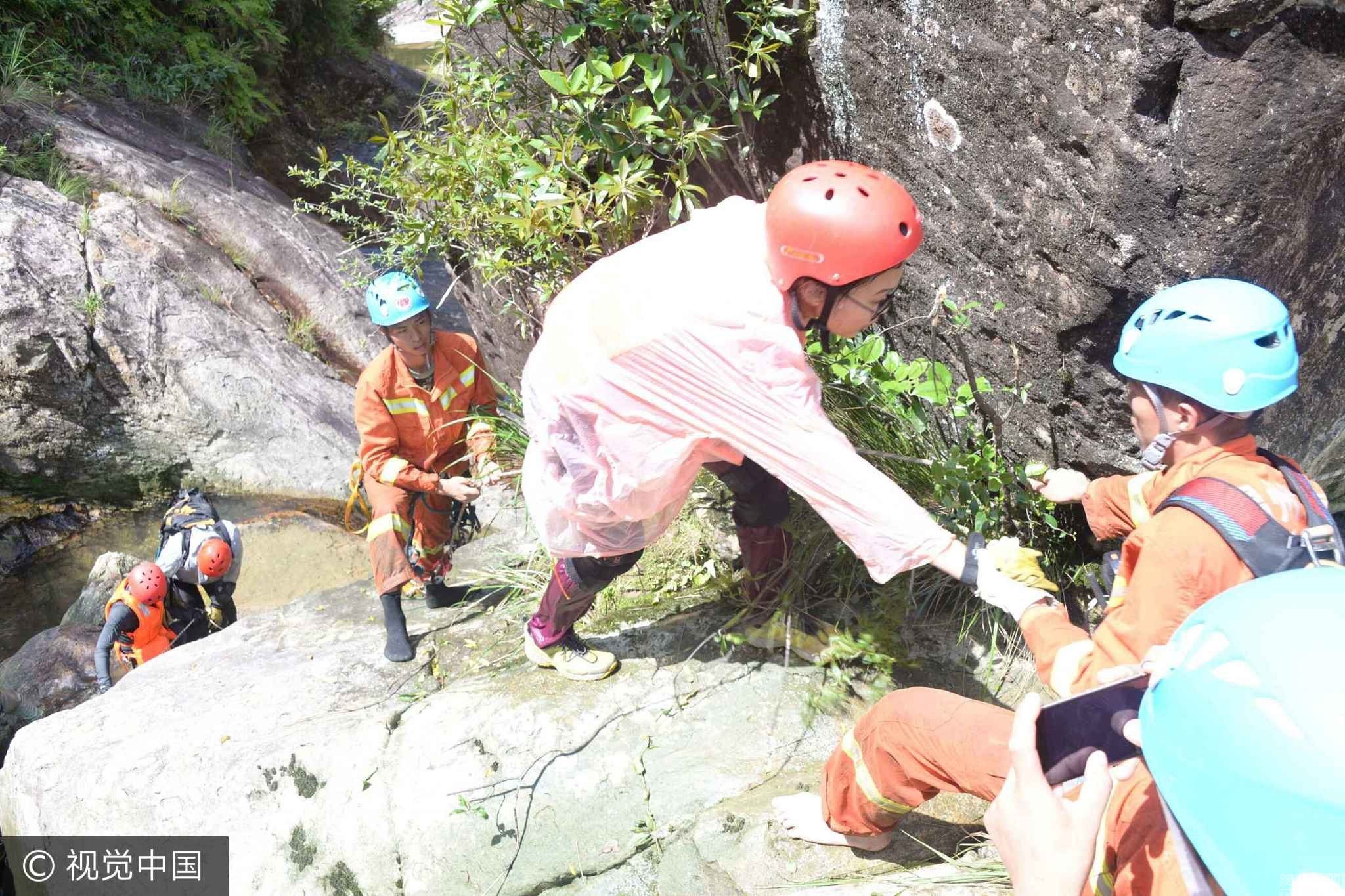 2017年7月2日,浙江温州,多名驴友被困数小时后被解救。当日凌晨,22名驴友被困于浙江温州文成巨屿镇黄龙村的百米悬崖下,当地消防官兵连夜奋力搜救,成功将驴友解救至安全地带。(视觉中国)