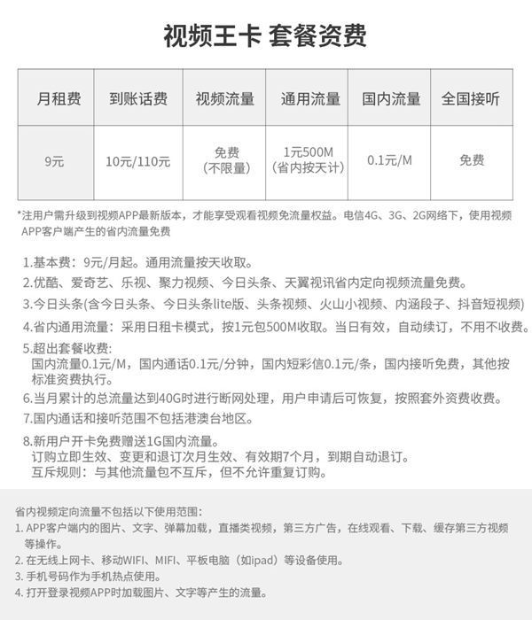 在中国联通与一众互联网公司推出了定向免流卡之后,中国电信也坐不住了,相继与小米优酷等互联网厂商进行了合作,如果你是来自四川的一名视频控,那么现在介绍的这张电话卡比较适合你,因为其能够实现六家互联网厂商定向免流。