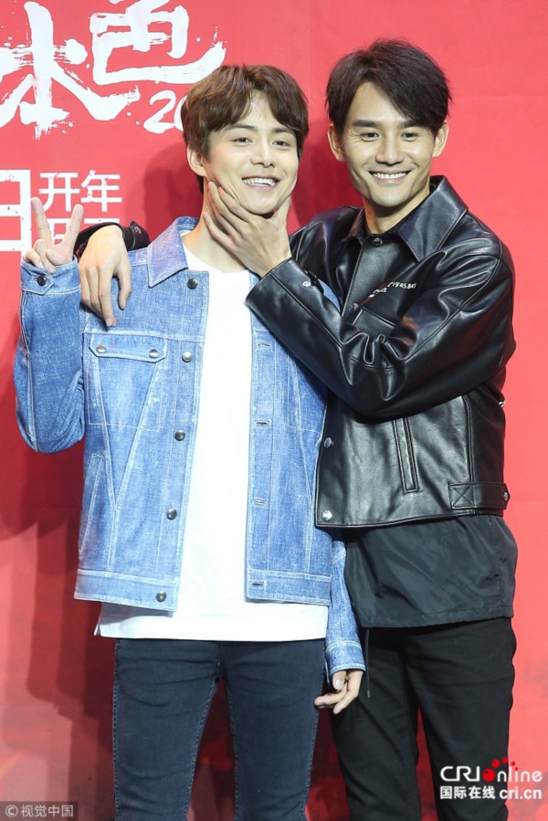 2017年12月27日,北京,电影《英雄本色2018》举行发布会,导演丁晟携主演王凯、马天宇、王大陆现身。王凯身着黑色皮衣配衬衫帅气有型变身"黑马王子",频频被逗得"仰天长笑"不顾偶像形象,掐马天宇脸基情四射。王大陆条纹西装英俊潇洒,遭马天宇摸腹肌一脸惊恐。刘鹰/视觉中国