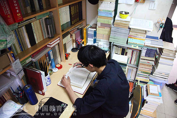在这些光环背后,赵王玮付出的努力是一般人难以想象的,他大量阅读古籍文献来丰富自己的知识储备。他入住的A3520寝室,光他一个人的书就超过1000本,书多到桌子上放不下就在地上堆成一座座小山。