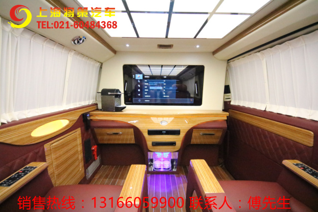 高档电动窗帘采用意大利进口Alcantara进口面料,BOSE音响系统,影院级试听感受,体验极致享受。柚木地板、BOSE音响系统、220V外接电源、车载专用冰箱、精致吧台+32寸电动升降隔断电视机,细节之处丝丝入扣,为您带来全方位惊艳出行。