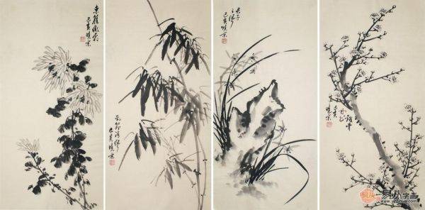 郑晓京《梅兰竹菊四条屏》(作品选自:易从网)