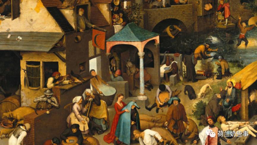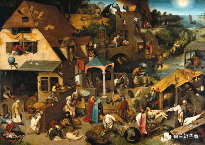 但这次奶叔遇到了挑战:画家通过几十个人物的外貌和动作,表现出了一百多个荷兰谚语!这就是尼德兰画家彼得·勃鲁盖尔于1559年创作的《尼德兰箴言》,又被人称作"荷兰谚语",画中都是许多当时在尼德兰地区非常流行的谚语,其中很多谚语直到现在也为人所使用。