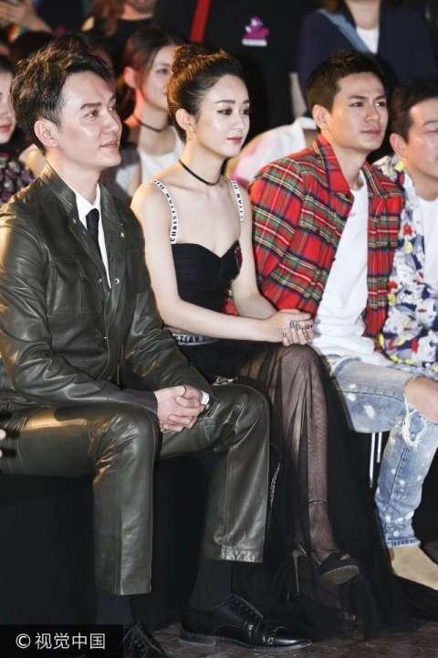 2017年4月15日,北京,电影《西游记:女儿国》举办"秀之夜"发布会。林志玲高叉裙跷二郎腿坐台下不惧走光与小沈阳热聊。赵丽颖吊带纱裙显甜美与郭富城聊不停。 图片来源:大牛/视觉中国