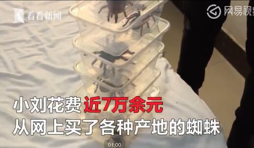 苏州一租客的房间起火,房东发现后立刻报警。这些蜘蛛是租客小刘饲养的宠物,6年前他开始沉迷于此,今年来,已经花费近7万余元从网上买了各种产地的蜘蛛。小刘坦言,因为蜘蛛怕冷,为了保持恒温,小刘便自制了一个“保温棚”,棚下面铺上电热毯。
