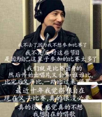 张学友直言自己不会去参加比赛,而且张学友觉得自己已经不需要再比了。 张学友还说:"其实我很佩服参加我是歌手的歌手,还要去给评判来评,老实说那些评判都不知道懂不懂的。" 主持人代表我们说出了心里话,你已经是歌神,无需再参加这些比赛节目证明自己。