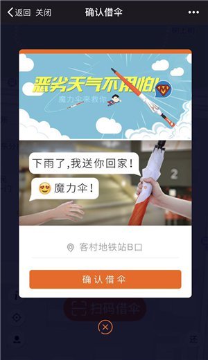 还伞也非常方便,由于伞柄上带有电子标签,意味着当用户把伞借走的那一刻,这把伞就跟用户绑定起来,下次还伞的时候只要把伞放回任意一台借伞机,就会自动确认还伞,而无需在公众号上做相关操作。