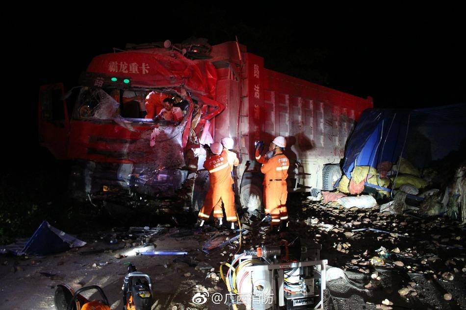 5月26日凌晨,广西玉林市陆川县良田镇马盘公路大人岭村路段,一霸龙重型卡车与一小型货车相撞,小货车车头几乎被撞碎,3人被困在变形的车体内。当地消防部门接到报警后火速赶赴现场处置,利用牵引绳、液压扩张器等工具,成功救出被困人员。
