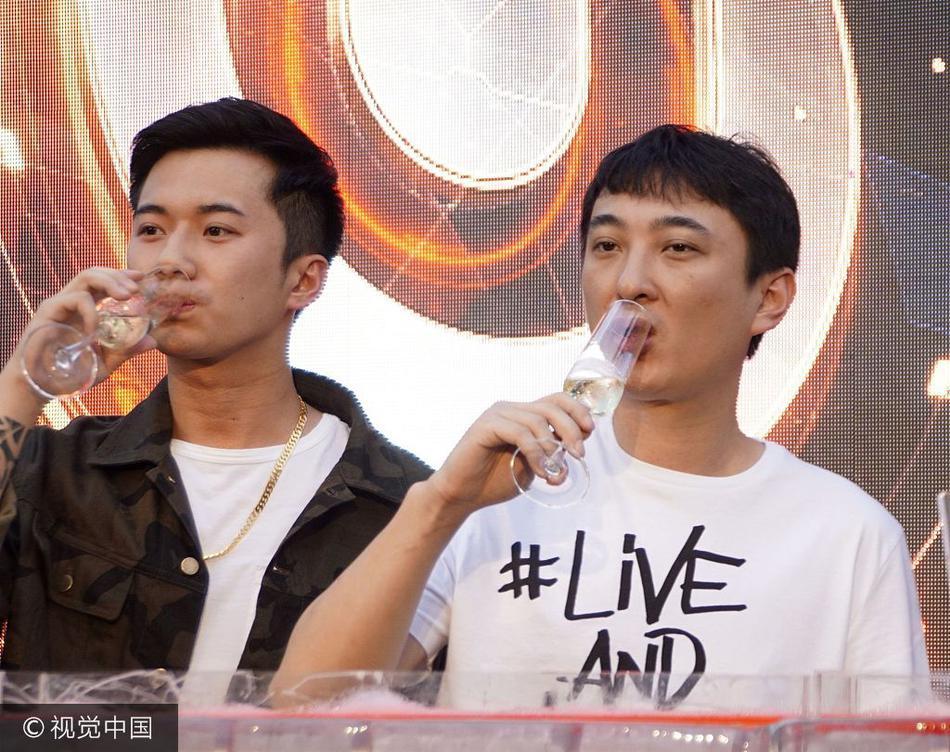 组图:王思聪短裤白T畅饮香槟 平民style台下低头玩手机