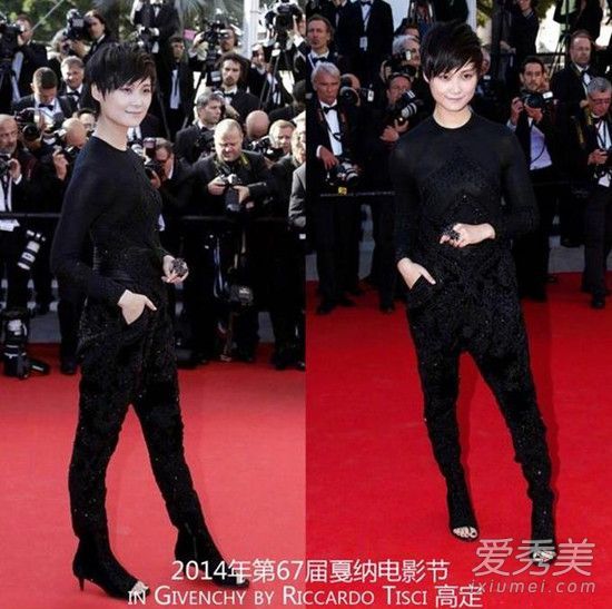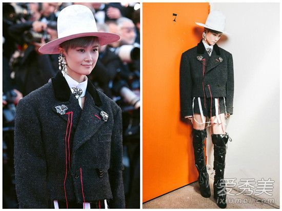 李宇春2017年戛纳红毯造型正是曝光,顶着和去年一样的发色,这次李宇春换了一种完全不同的风格,短裤+长靴,还有一定个性魔术帽,有点帅气牛仔的感觉,同时不失复古感。