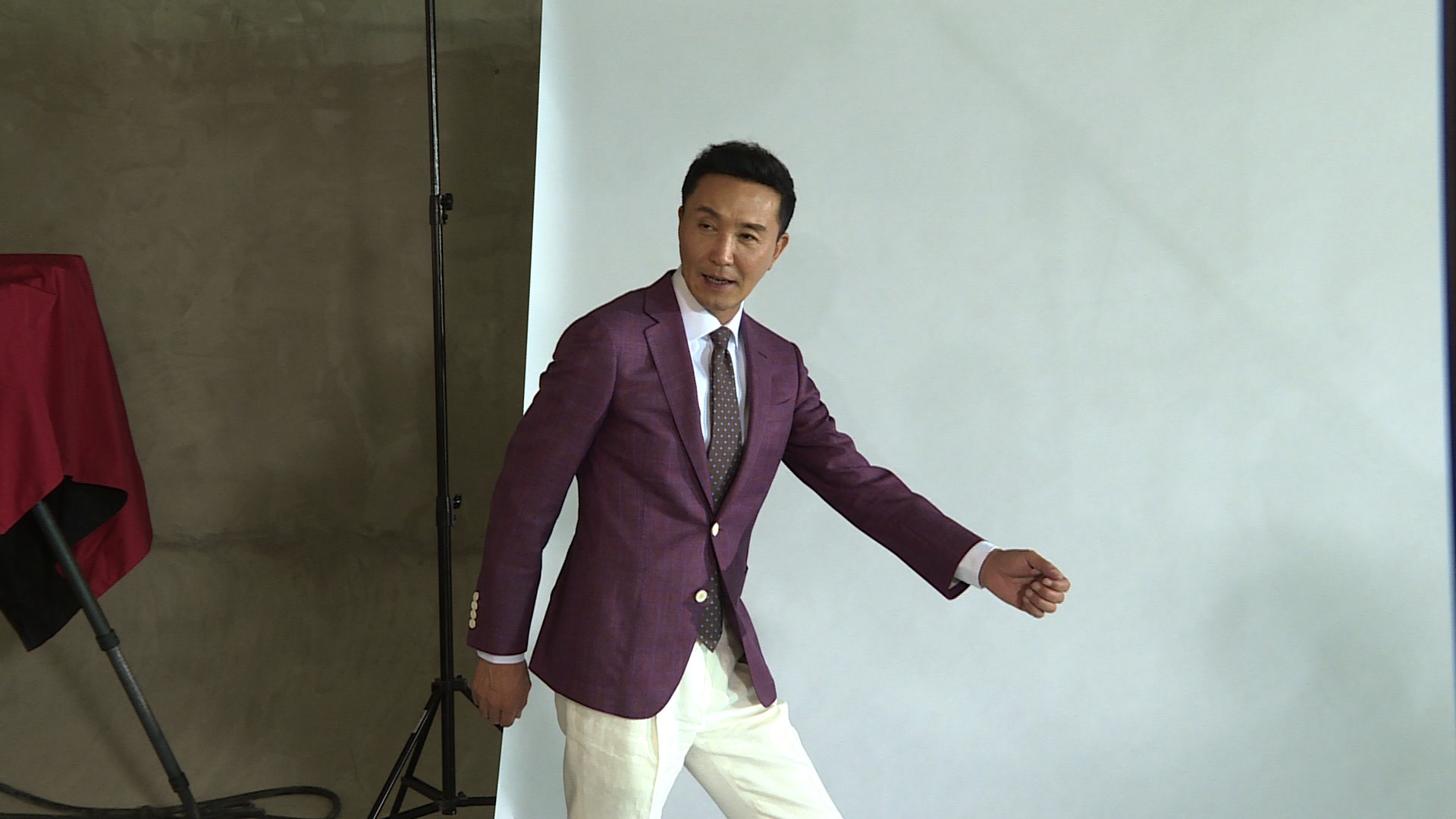 您瞧,镜头前的吴刚身着紫色西装,能耍帅能卖萌,堪称百变老戏骨。