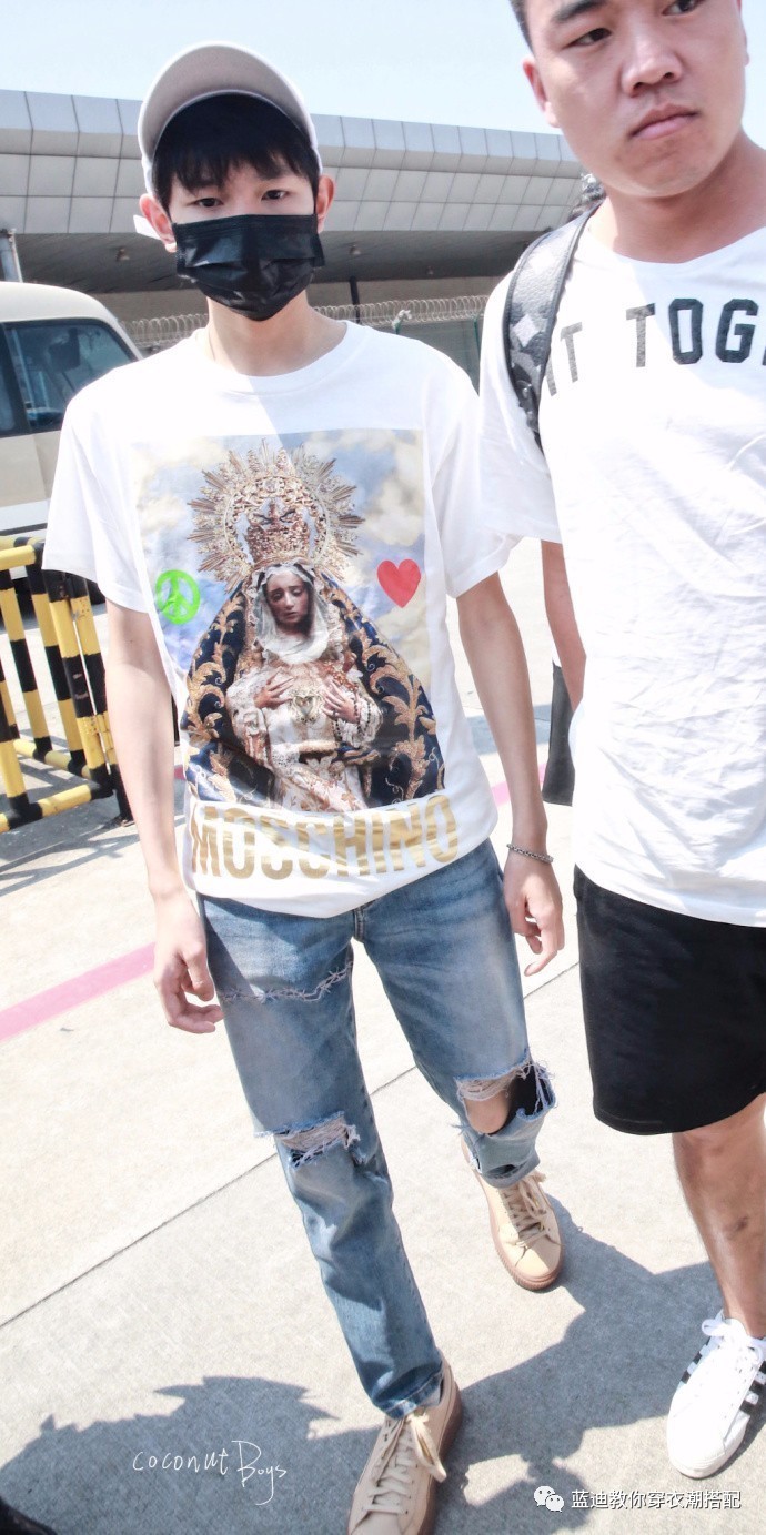 8月20日,@TFBOYS-王源重庆️飞银川 王源同学的T恤左和平右爱心,想到他曾赴联合国发言,调性好像挺一致#男明星私服##王源私服#
