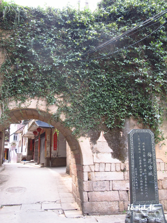 梅花古城,部分城墙及东门一带至今保存完好,城内古厝毗连,古道连接,古祠古庙林立,甘甜依旧的古井仍滋养着明代海疆卫士的后人,走在古城,很容易感受到带着阳刚之气的古韵。对两岸海防史有着颇深研究的台湾"中央研究院"副研究员陈宗仁说,这是两岸保存较好的一座明代海防城堡。