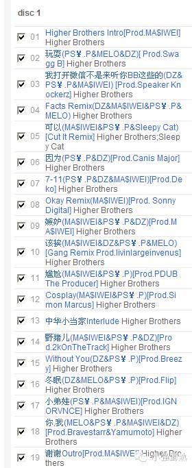 2、 Higher Brothers Mixtape共有歌曲19首,以当下最火的Trap风格为主;