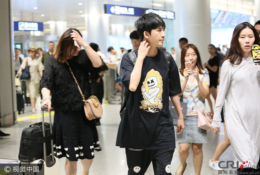 大张伟与老婆情侣装现身 刘迎素颜出镜显朴素_北京时间