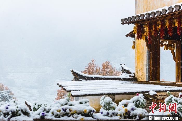 图为雪中的晒秋台。 洪海君 摄