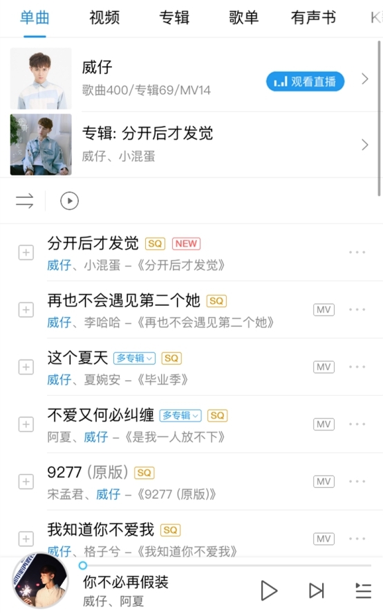 其实,早在《你不必再假装》刚上线酷狗时,就收获999+评论。在直播期间,通过观众们的热情打call,评论更是突破了2999+,威仔的创作才华与唱功得到大家的一致认可!为了感谢大家的支持,威仔表示下播后会到酷狗音乐的新歌评论区回复大家的留言,真的是太宠粉了!