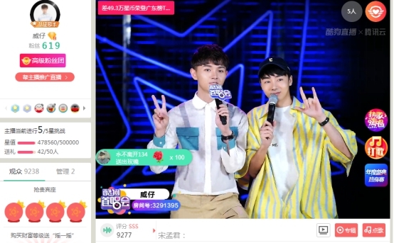在粉丝们的强烈要求下,威仔和宋孟君也引来了首次酷狗直播同框,合唱了《9277》《地铁等待》《最美情话》等在酷狗音乐里播放量极高的歌曲。