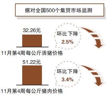 据农业农村部对200个批发市场监测调度数据显示,全国猪肉价格至今已连续4周回落,降幅超过20%。12月1日猪肉价格为每公斤41.48元,比11月1日每公斤52.4元下降10.92元,降幅达20.84%。