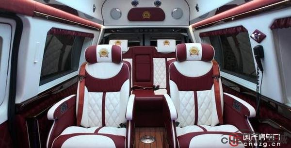 福特大尺寸E350图片,[ ]7座MPVPK宝骏310W.新款福特E350豪华商务房车最大的亮点来自于iPad控制总线,可控制内容包括电视机开关、电脑开关、DVD娱乐系统、隔板与玻璃升降、氛围灯开关、夜间模式、隐私模式以及可透视天窗的开关。对于商务房车来说,车内的座椅和空间等才是车主最重视的部分。