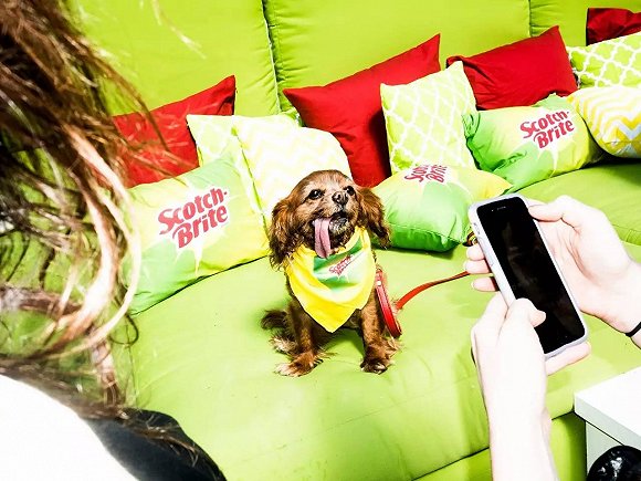 比如搜狗前一段时间的一组广告,为了介绍它的产品怎么用,真的找来了一群宠物狗出演广告片。