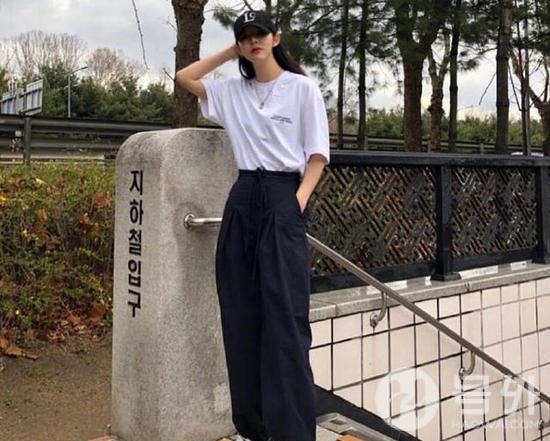 白色T恤+黑色阔腿裤很经典百搭。高腰的阔腿裤举高腰线,拉长身形份额,显高显瘦。阔腿裤束腿的规划又极具休闲运动感,调配一顶黑色棒球棒,使全体调配看起来非常调和,经典耐看。