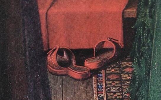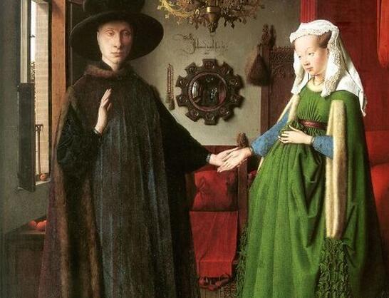 一男一女牵着手(这也叫牵手哦)、可爱的小狗、红色床铺、华丽的吊灯,还有一面最为关键的诡异镜子。画中的男主人公是一位意大利的商人,他因事来到了尼德兰,带着他的新娘,然后请扬·凡·艾克用油画为他们记录结婚这庄严的一刻,表示他们的结合。