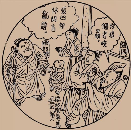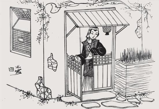 进入清代,《金瓶梅》绘画的创作基本就是围绕崇祯本木刻版画的翻刻和描改。在几种巾箱本的小版《第一奇书》中,增加部分人物的绣像。最值得珍视的是《清宫珍宝皕美图》的创作,共计200 幅,数量、水平均叹为观止。画家以崇祯本回目为题,在木刻画的基础上,以工笔重彩丰富构图,描绘细节,更胜一筹。有理由相信其出自清代的宫廷画家之手。可惜原作因为战乱而散佚海外,期待它能有重现于世的一天。