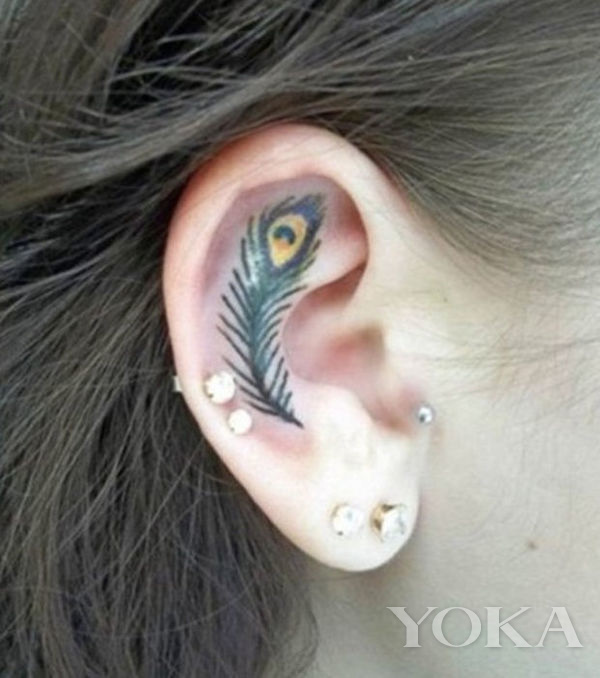 说到美丽的事物,当然少不了孔雀,纹一只孔雀的尾羽在耳朵上,你也能变成漂亮而骄傲的孔雀。