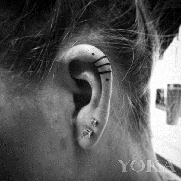 如果你喜欢简约款,不妨只纹几条线段和圆点,简单的图案就足以让耳朵更有型。