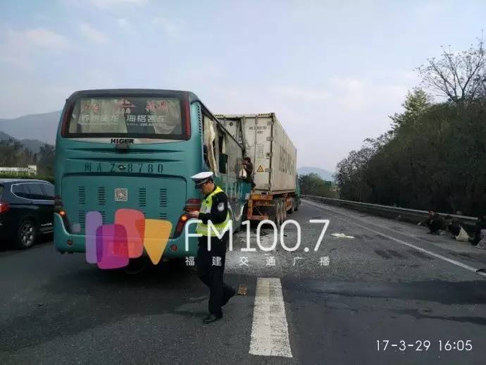 今天下午15点30左右,在沈海高速的连江丹阳段,一部客车追尾一部集装箱式半挂拖车,客车内7名乘客不同程度受伤,其中两人重伤送医,已送医。