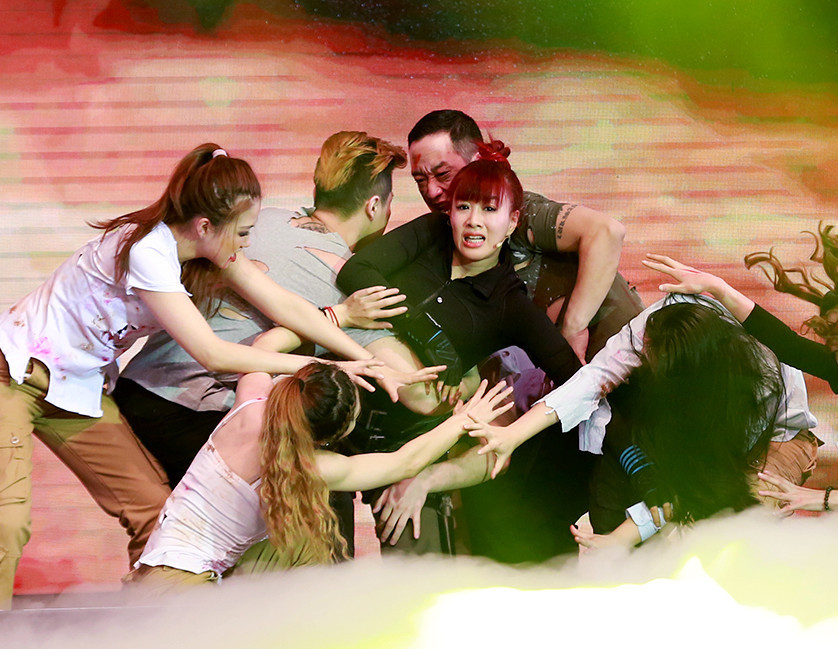 在决赛的车轮战中,"山东媳妇"钟丽缇将打头阵拉开巅峰之战的序幕。上期的"赛车女神"这期依然帅气,一身黑色紧身服难掩好身材,现场还和"行尸走肉"大跳机械舞。本期,钟丽缇不仅要挑战"逆天"的倒挂行走,竟然还要求残酷加码,增加高空吊环。