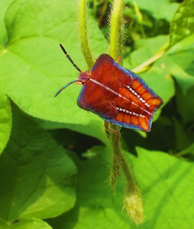 春夏季节,爬在农作物的茎叶上吸食浆液,不留心碰上它,便放出一种奇臭难闻的气体,使人避而远之,因而落个"臭板虫","屁巴虫"或"打屁虫"的臭名。