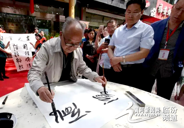 上午的开幕仪式上,中国武笔书法技巧第一人王殿奎、张西晋现场挥毫波墨,为小姚餐饮公司题书祝福,他们高难度的技艺、精湛的书法博得了阵阵喝彩。