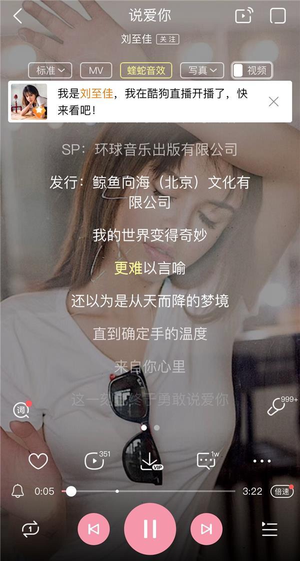 当晚,刘至佳的直播间陆续涌入大批观众,其中有人表示是从酷狗音乐过来的,原来自从酷狗直播和酷狗音乐双方互通之后,一旦歌手开播,听众就能及时收到开播提示,轻松点击就可直达歌手直播间,倾听一线live现场,近距离跟歌手互动,同时大幅增加歌手的曝光率,可谓一举多得!